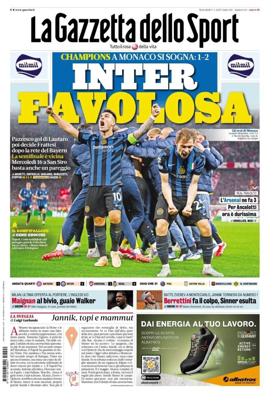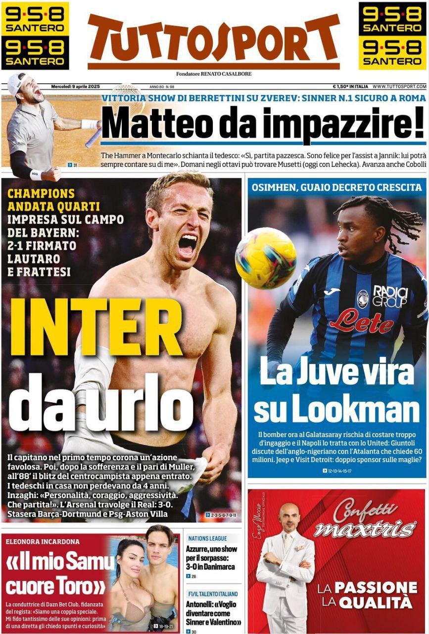 Le prime pagine dei quotidiani sportivi in edicola mercoledì 9 aprile