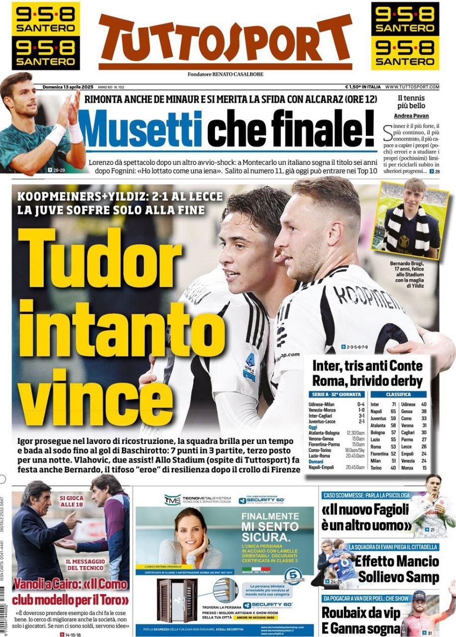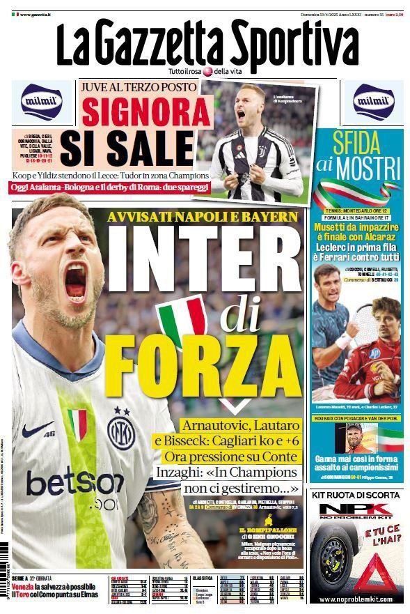 La redazione di calciocatanzaro propone ai lettori le prime pagine dei tre quotidiani sportivi in edicola oggi, domenica 13 aprile 2025