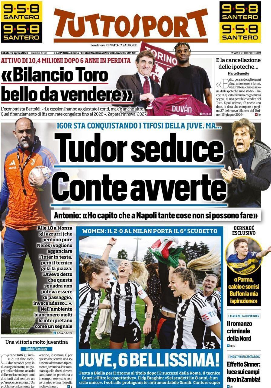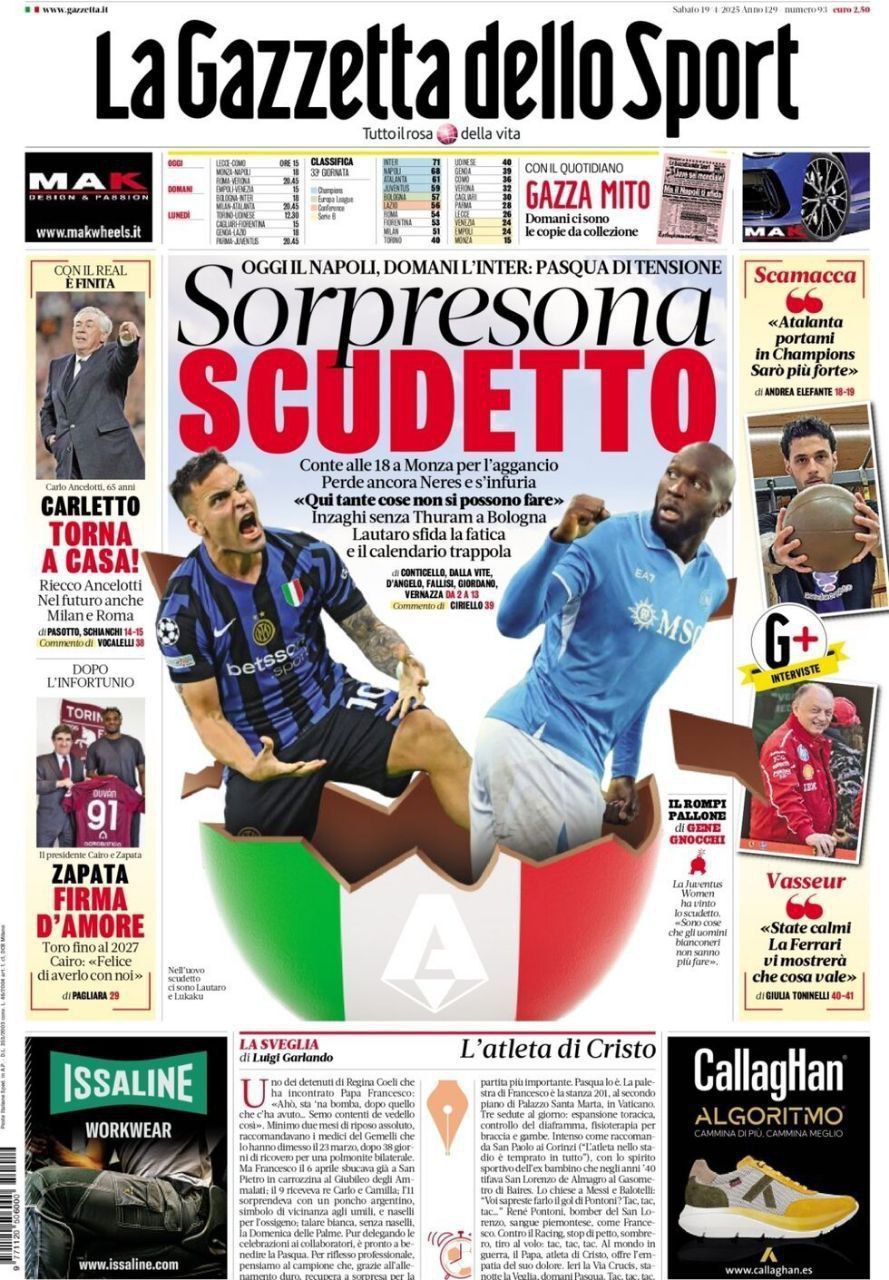 La redazione di calciocatanzaro propone ai lettori le prime pagine dei tre quotidiani sportivi in edicola oggi, sabato 19 aprile 2025