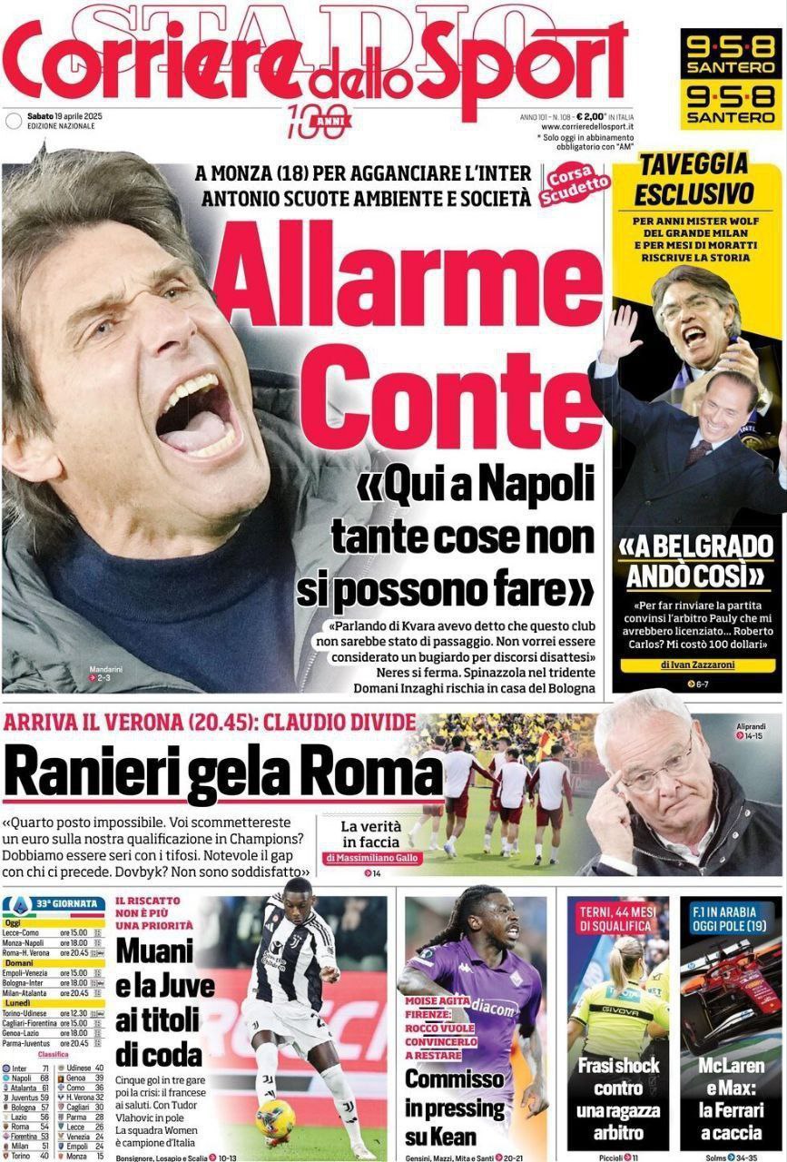 Le prime pagine dei quotidiani sportivi in edicola sabato 19 aprile