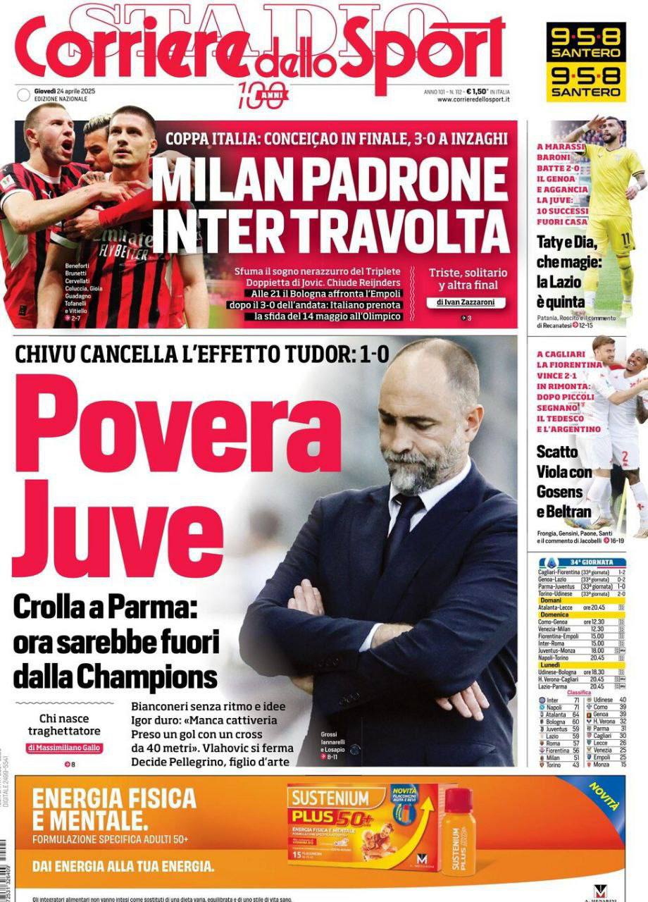 La redazione di calciocatanzaro propone ai lettori le prime pagine dei tre quotidiani sportivi in edicola oggi, giovedì 24 aprile 2025