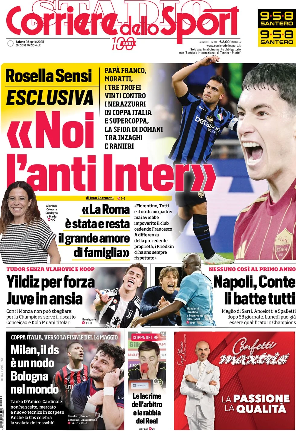 Le prime pagine dei quotidiani sportivi in edicola sabato 26 aprile