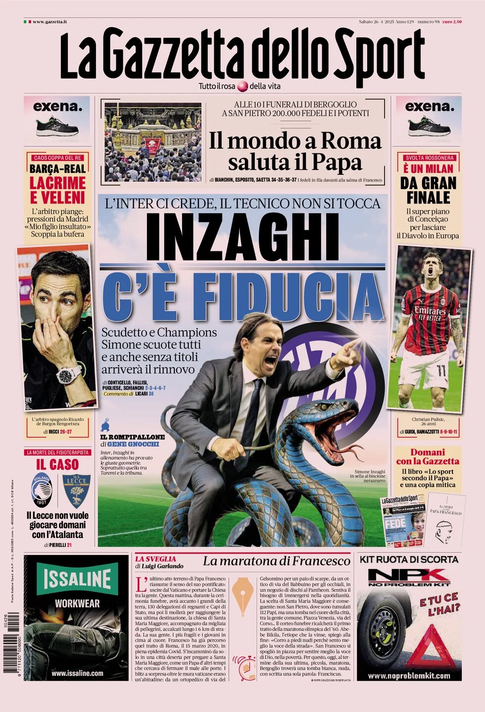 La redazione di calciocatanzaro propone ai lettori le prime pagine dei tre quotidiani sportivi in edicola oggi, sabato 26 aprile 2025