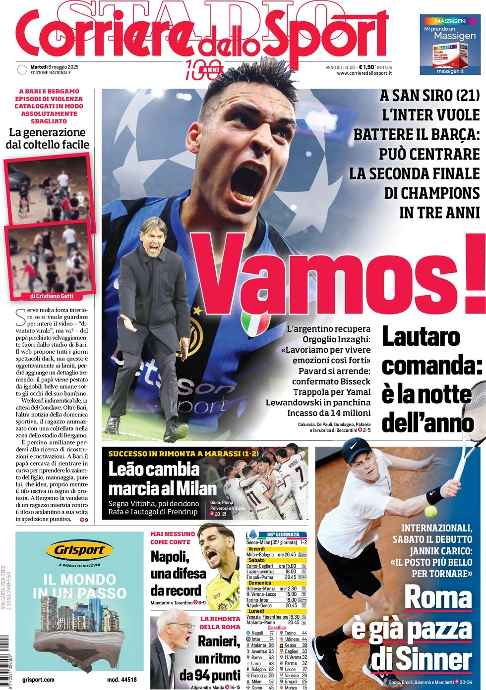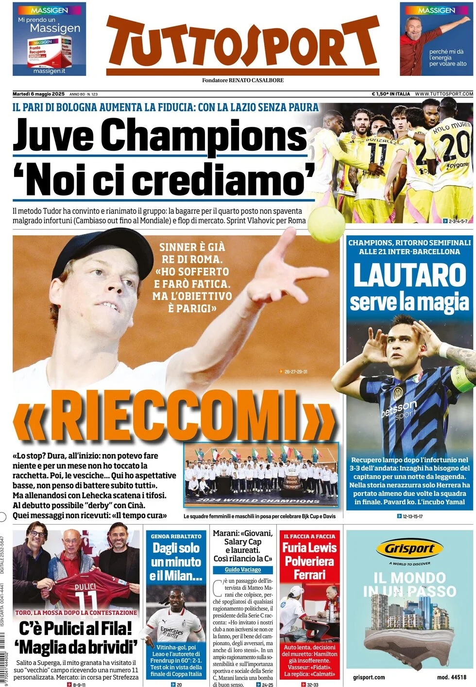 La redazione di calciocatanzaro propone ai lettori le prime pagine dei tre quotidiani sportivi in edicola oggi, martedì 6 maggio 2025