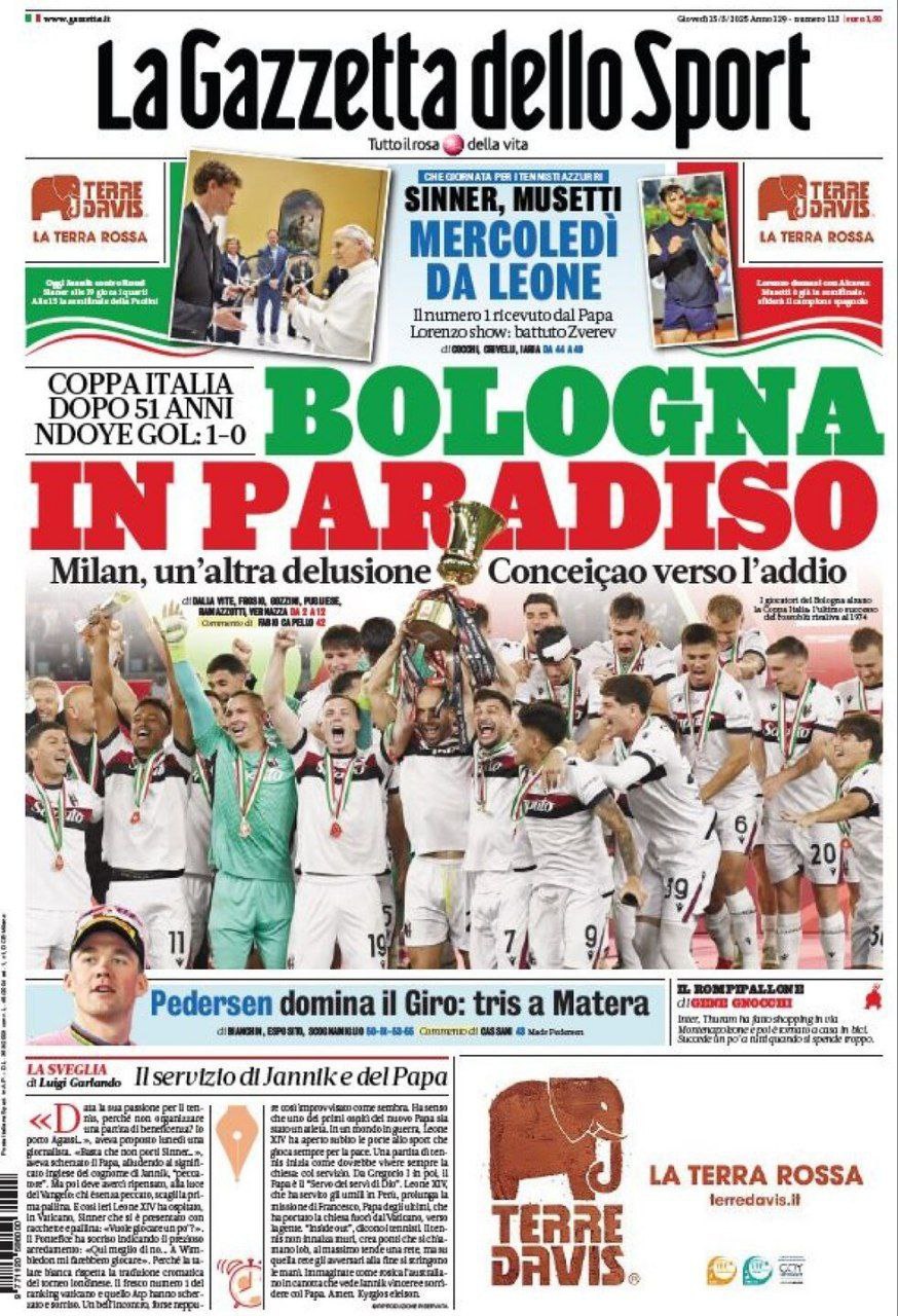 La redazione di calciocatanzaro propone ai lettori le prime pagine dei tre quotidiani sportivi in edicola oggi, giovedì 15 maggio 2025