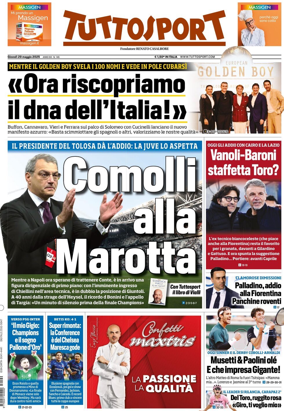 La redazione di calciocatanzaro propone ai lettori le prime pagine dei tre quotidiani sportivi in edicola oggi, giovedì 29 maggio 2025
