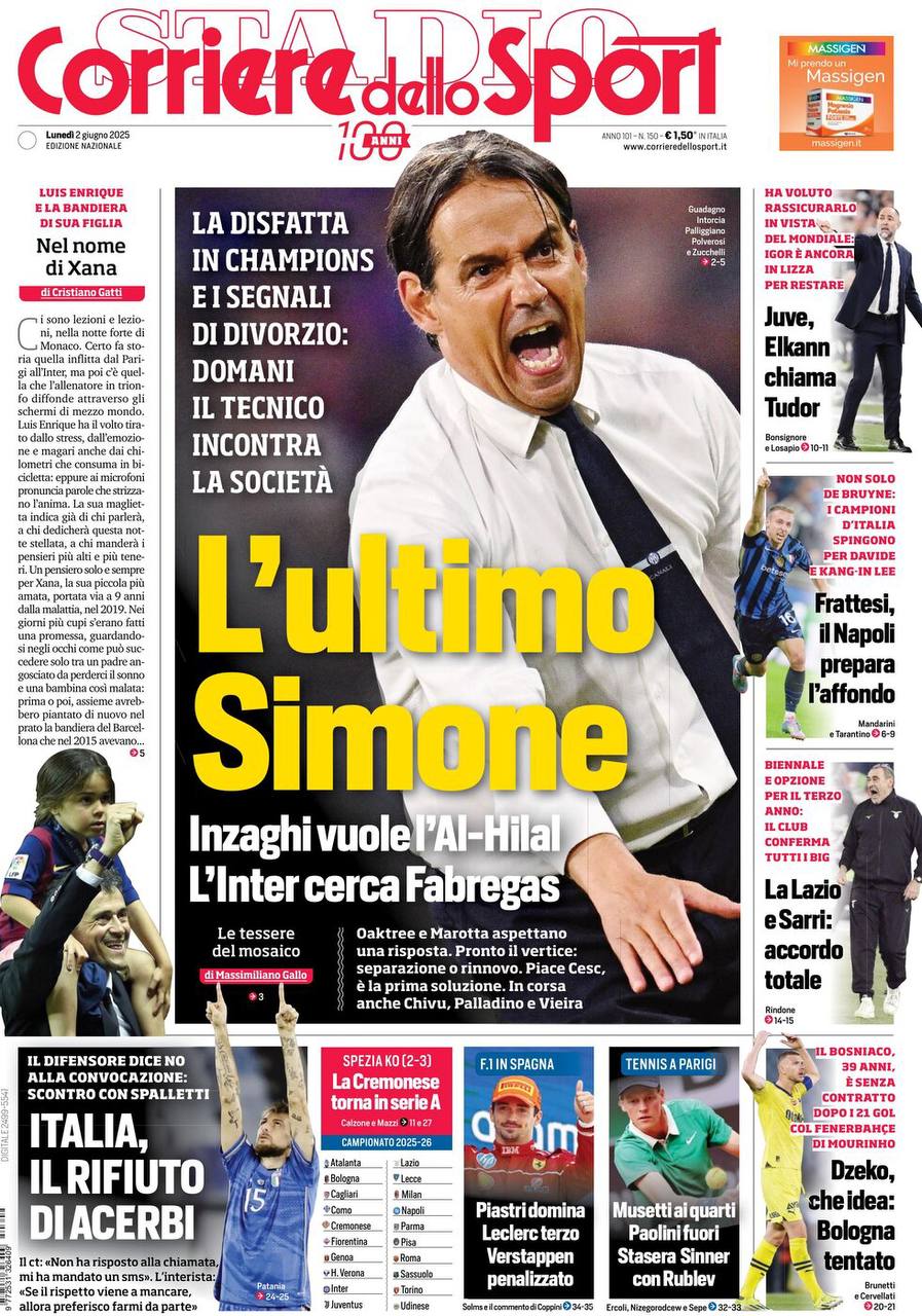 La redazione di calciocatanzaro propone ai lettori le prime pagine dei tre quotidiani sportivi in edicola oggi, lunedì 2 giugno 2025