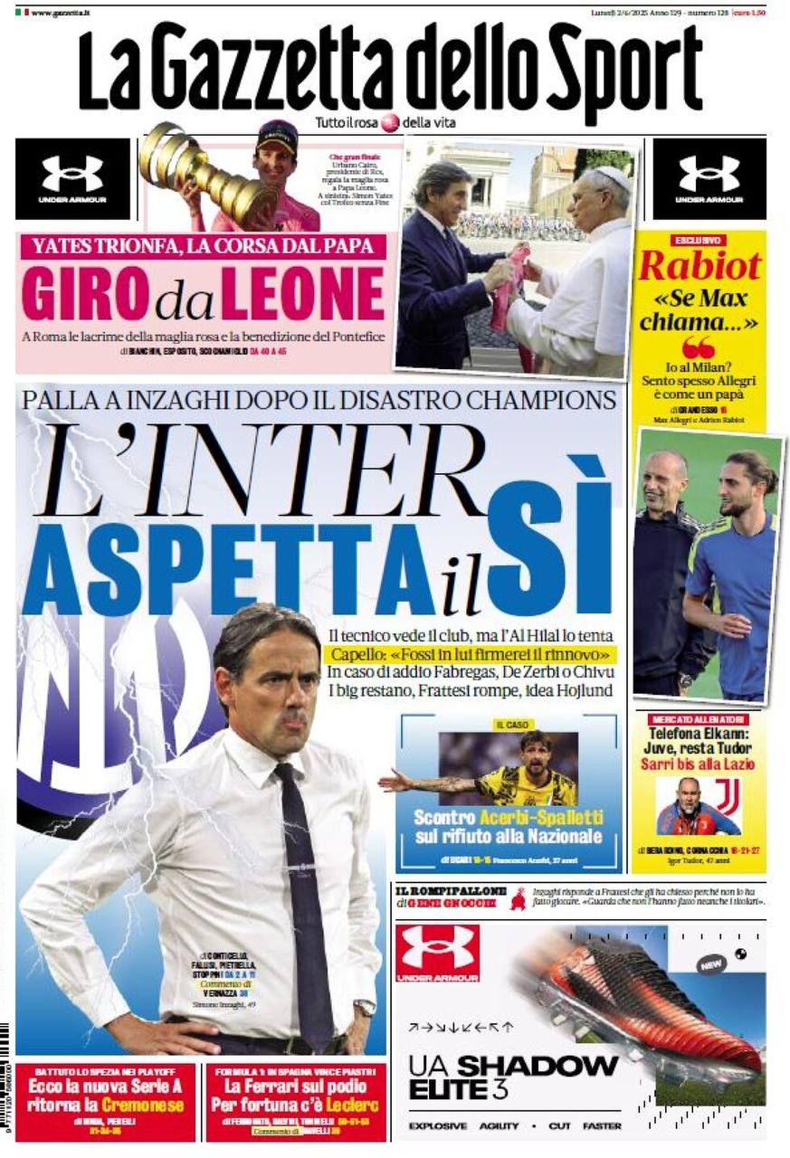 Le prime pagine dei quotidiani sportivi in edicola lunedì 2 giugno
