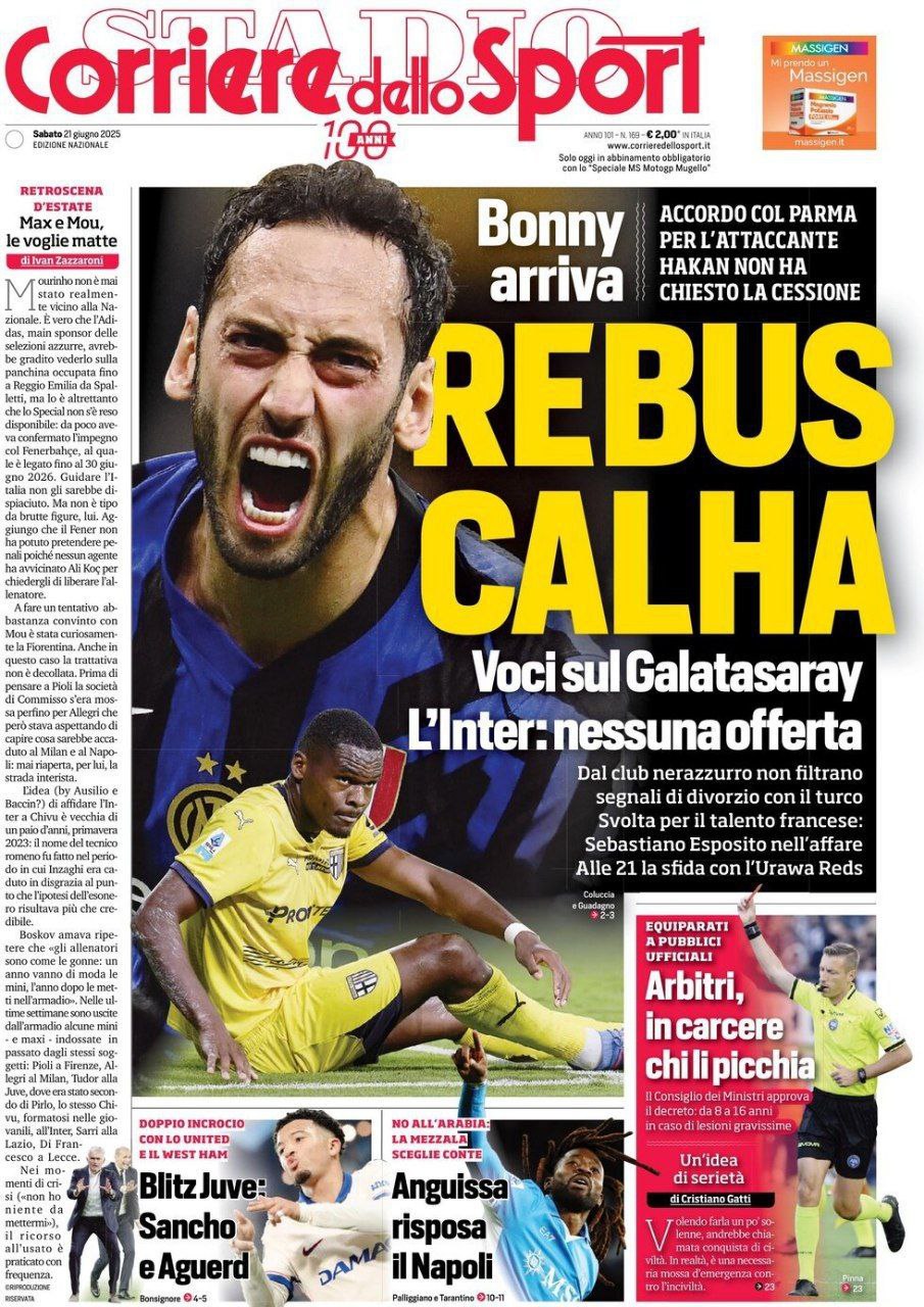 La redazione di calciocatanzaro propone ai lettori le prime pagine dei tre quotidiani sportivi in edicola oggi, sabato 21 giugno 2025