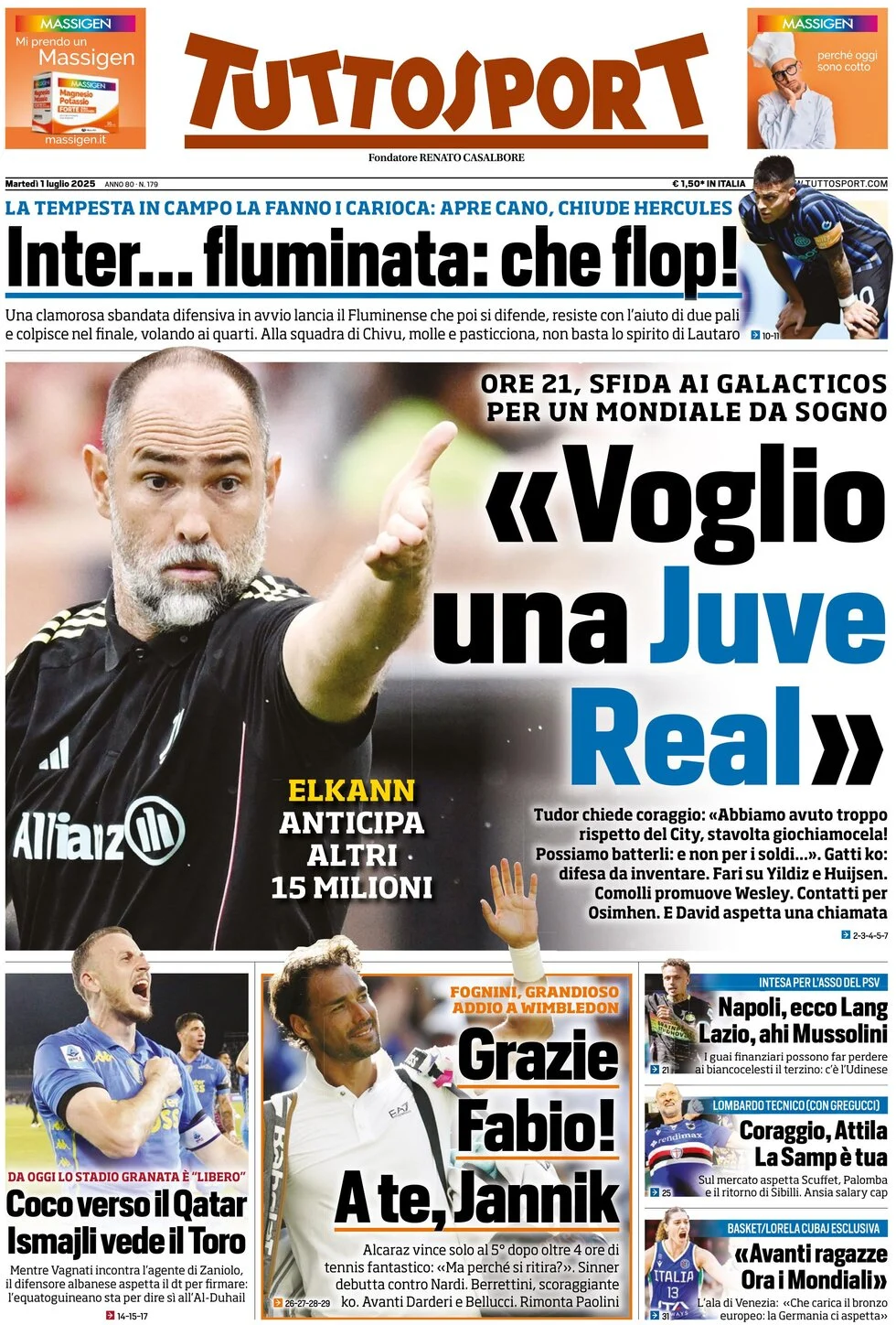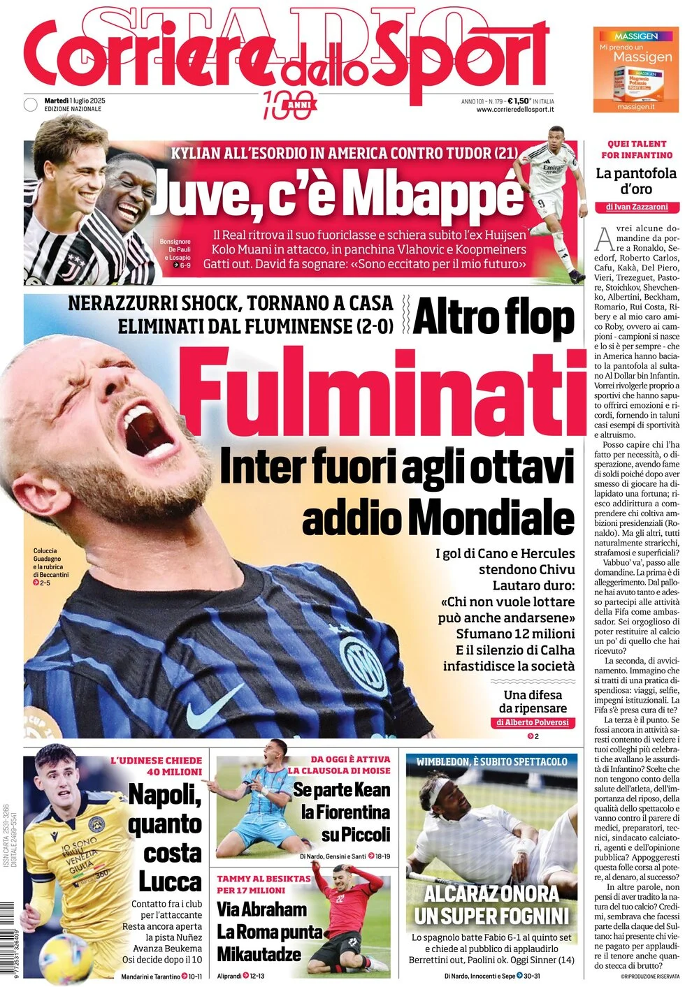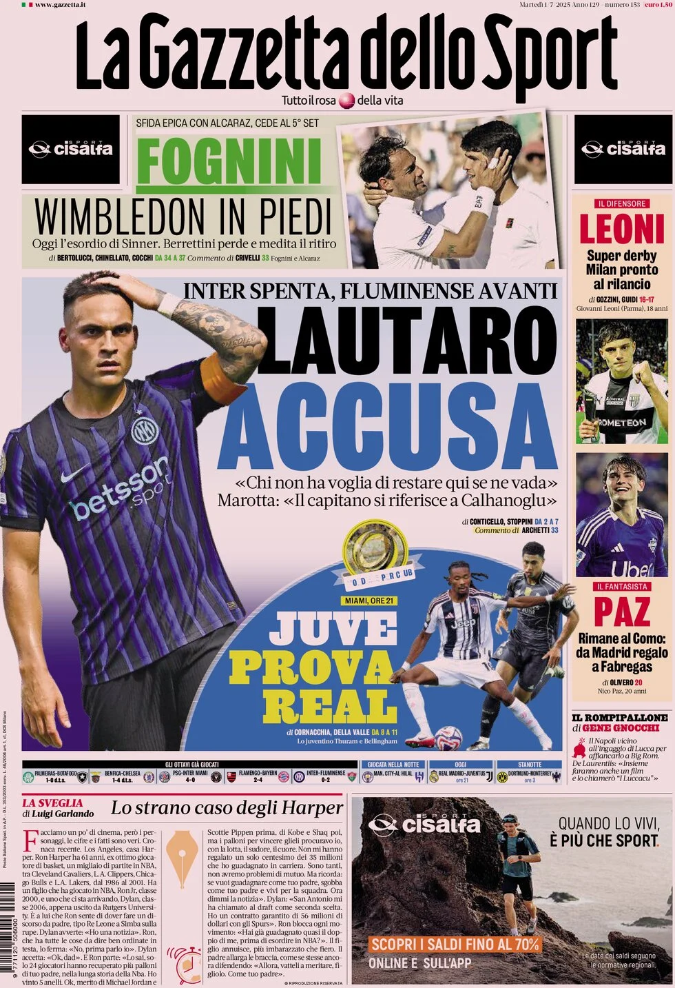 La redazione di calciocatanzaro propone ai lettori le prime pagine dei tre quotidiani sportivi in edicola oggi, martedì 1 luglio 2025
