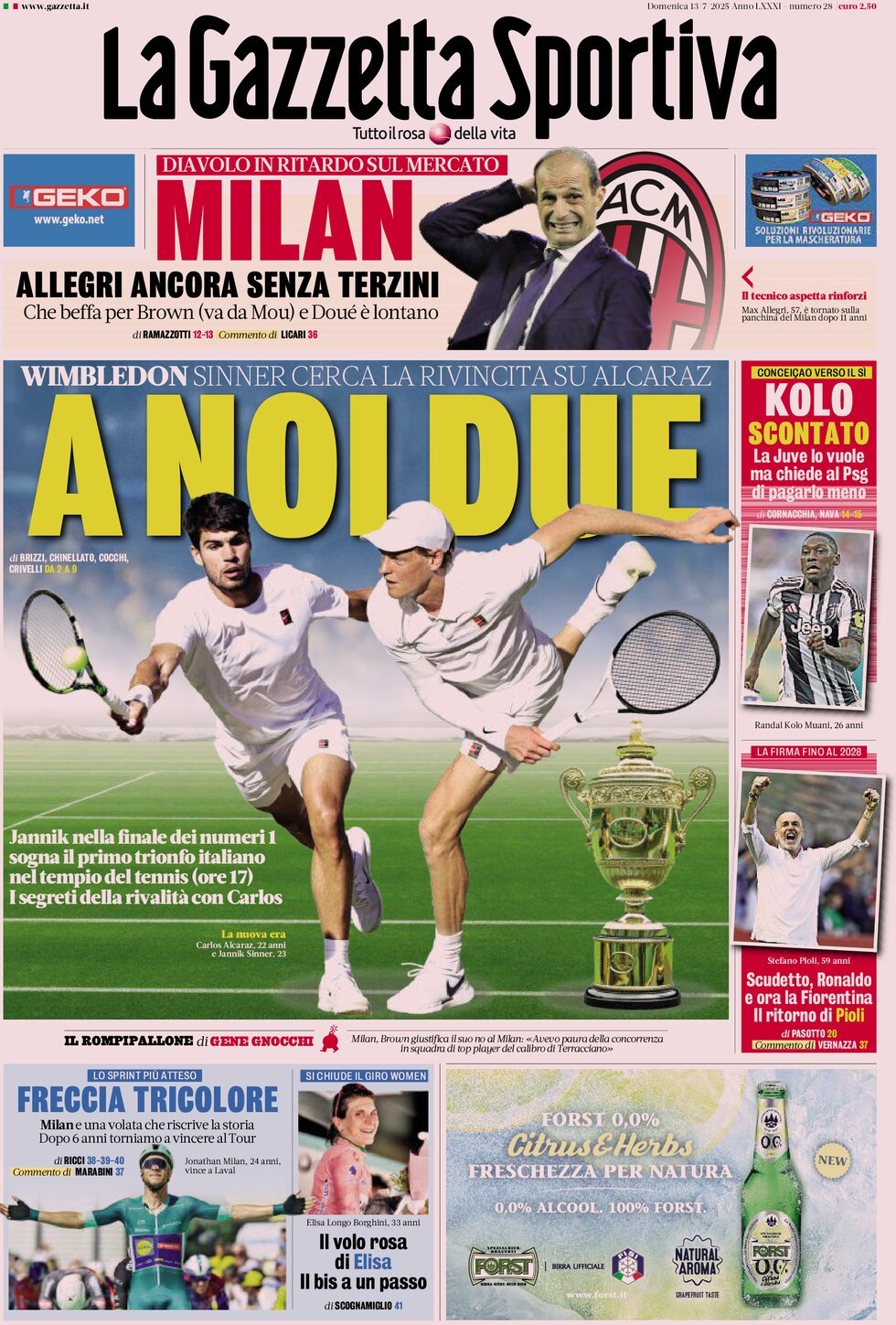 La redazione di calciocatanzaro propone ai lettori le prime pagine dei tre quotidiani sportivi in edicola oggi, domenica 13 luglio 2025