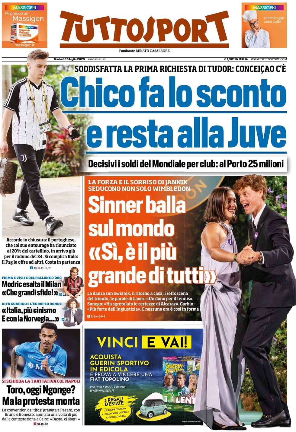 La redazione di calciocatanzaro propone ai lettori le prime pagine dei tre quotidiani sportivi in edicola oggi, martedì 15 luglio 2025