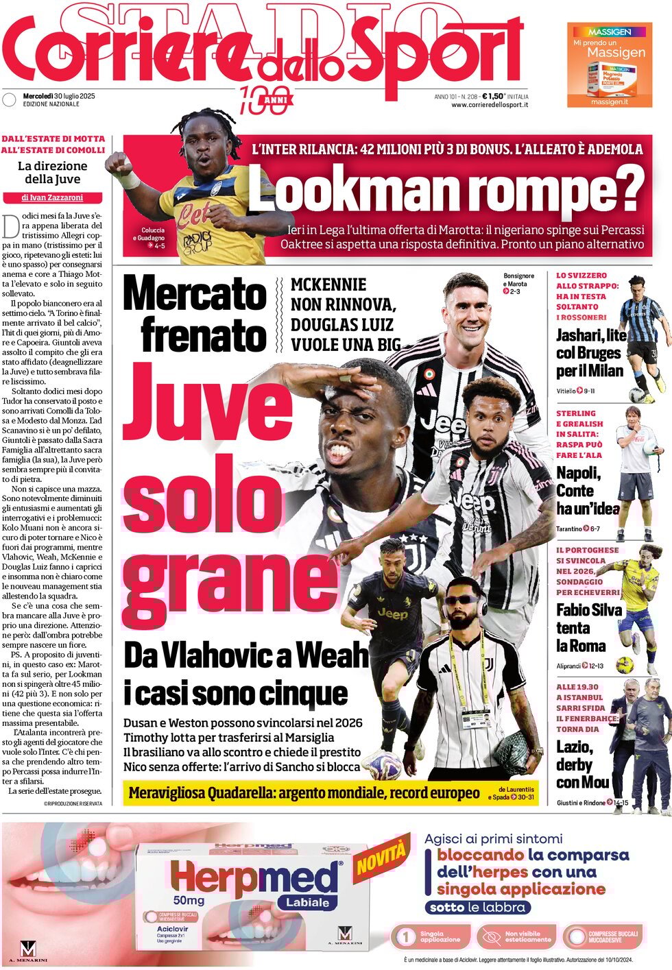 La redazione di calciocatanzaro propone ai lettori le prime pagine dei tre quotidiani sportivi in edicola oggi, mercoledì 30 luglio 2025