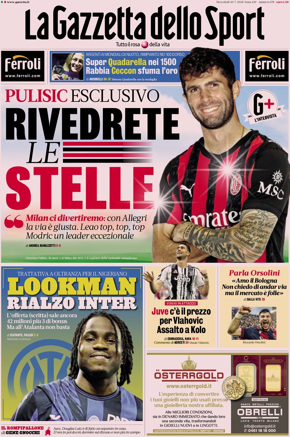 Le prime pagine dei quotidiani sportivi in edicola mercoledì 30 luglio