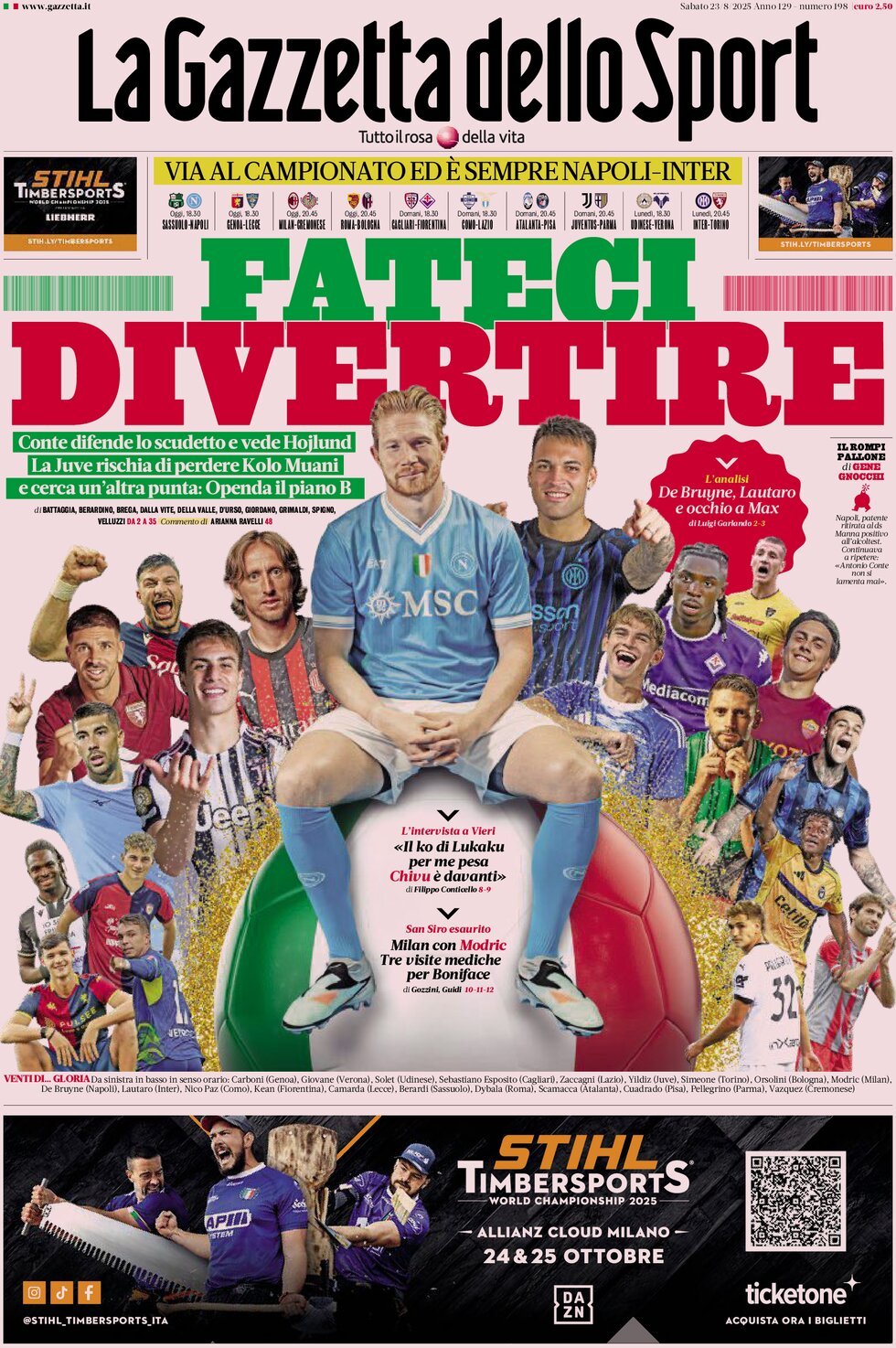Le prime pagine dei quotidiani sportivi in edicola sabato 23 agosto