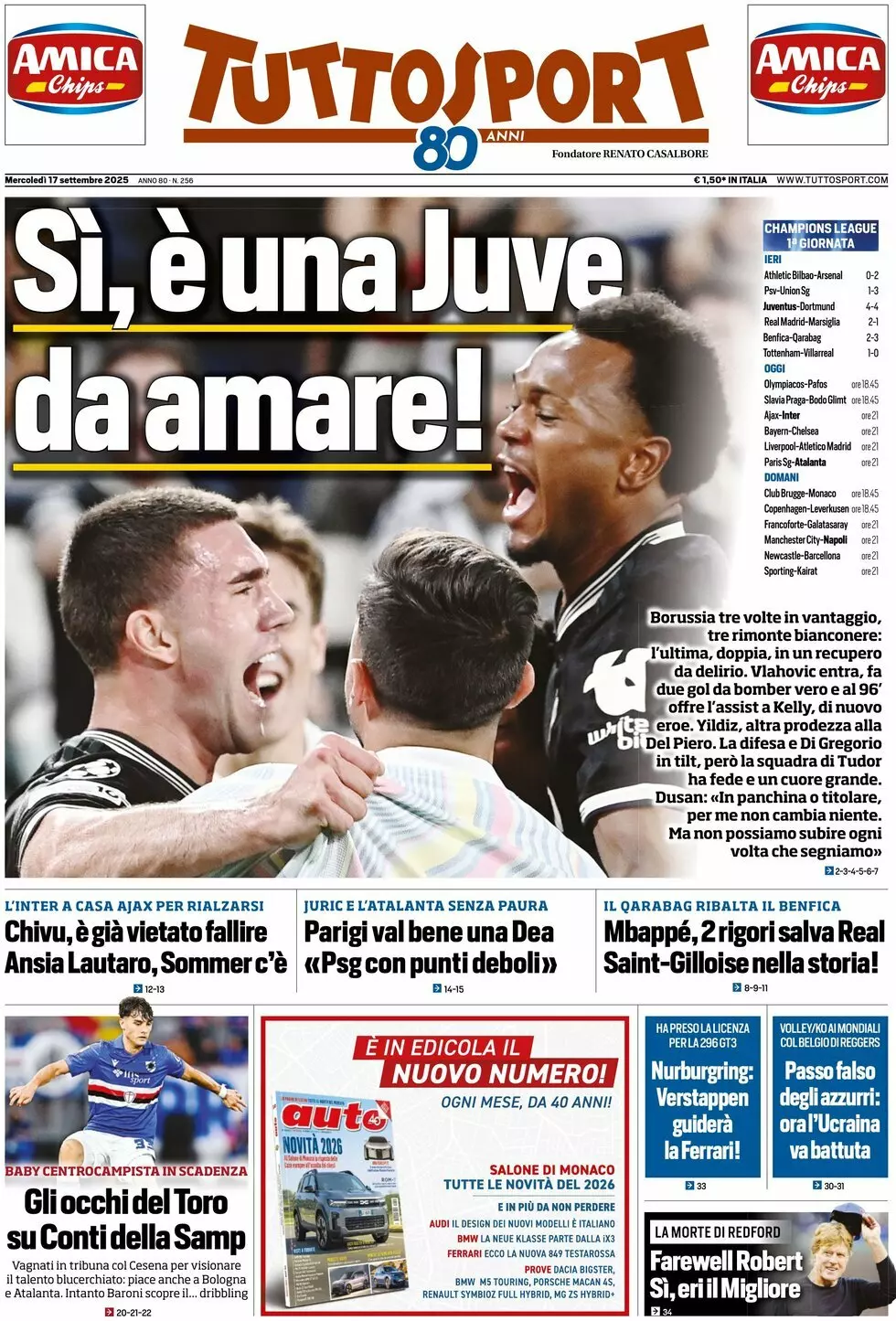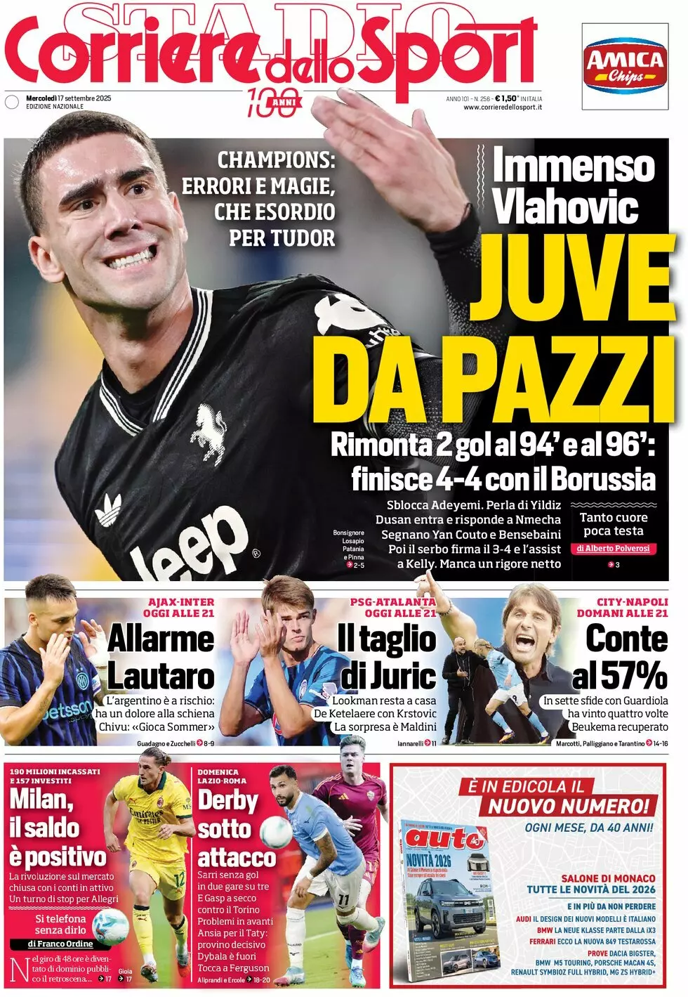 La redazione di calciocatanzaro propone ai lettori le prime pagine dei tre quotidiani sportivi in edicola oggi, mercoledì 17 settembre 2025