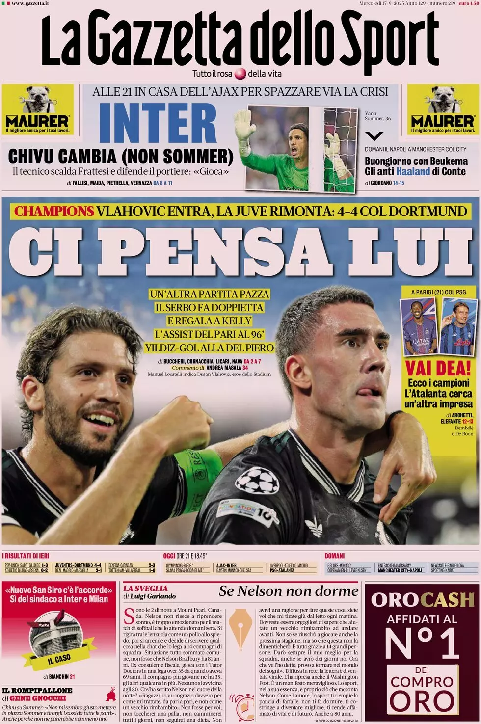 Le prime pagine dei quotidiani sportivi in edicola mercoledì 17 settembre