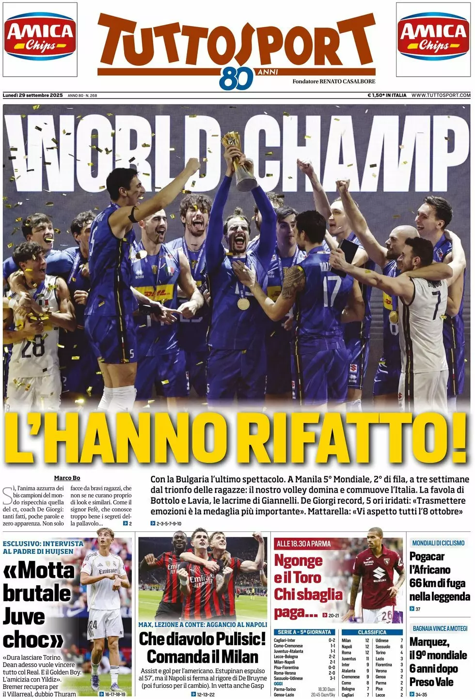 La redazione di calciocatanzaro propone ai lettori le prime pagine dei tre quotidiani sportivi in edicola oggi, lunedì 29 settembre 2025