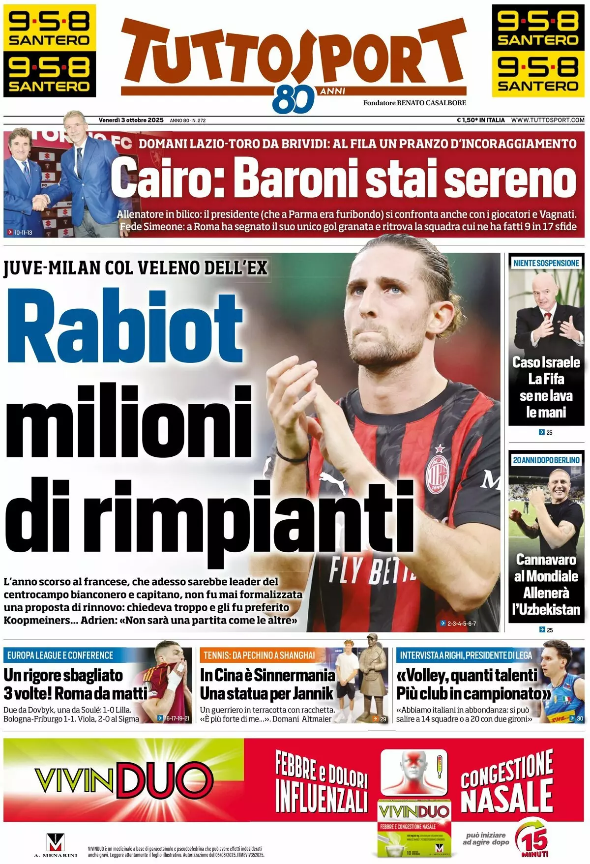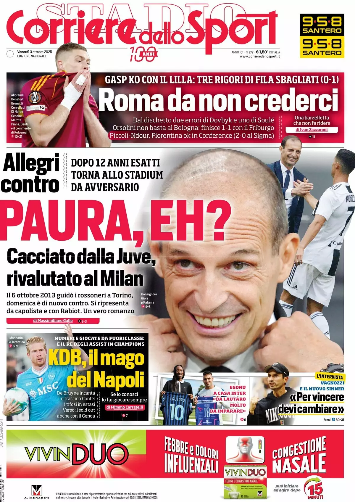 La redazione di calciocatanzaro propone ai lettori le prime pagine dei tre quotidiani sportivi in edicola oggi, venerdi 3 ottobre 2025