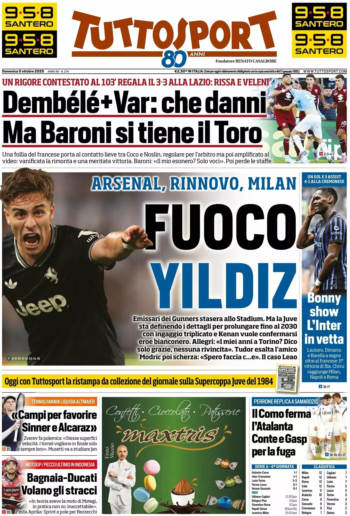 Le prime pagine dei quotidiani sportivi in edicola domenica 5 ottobre