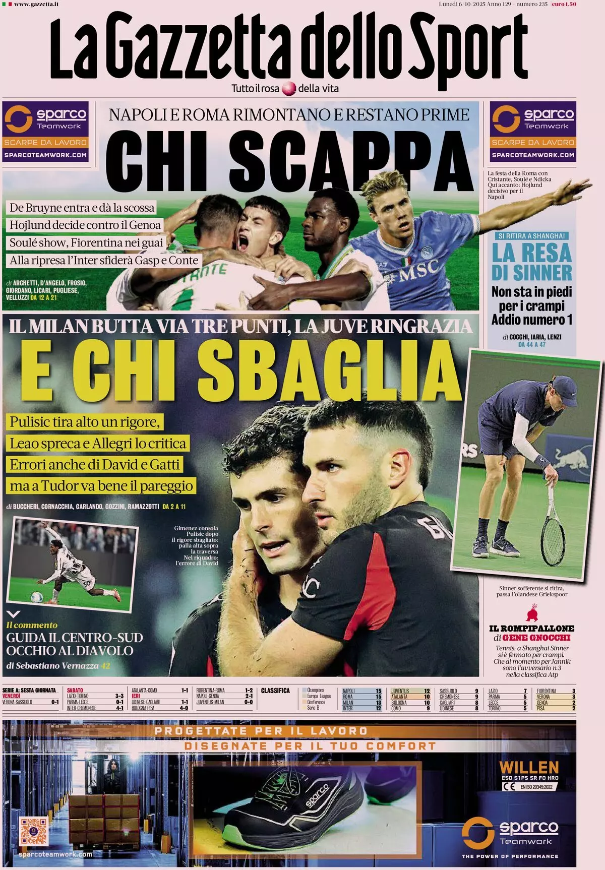 La redazione di calciocatanzaro propone ai lettori le prime pagine dei tre quotidiani sportivi in edicola oggi, lunedì 6 ottobre 2025