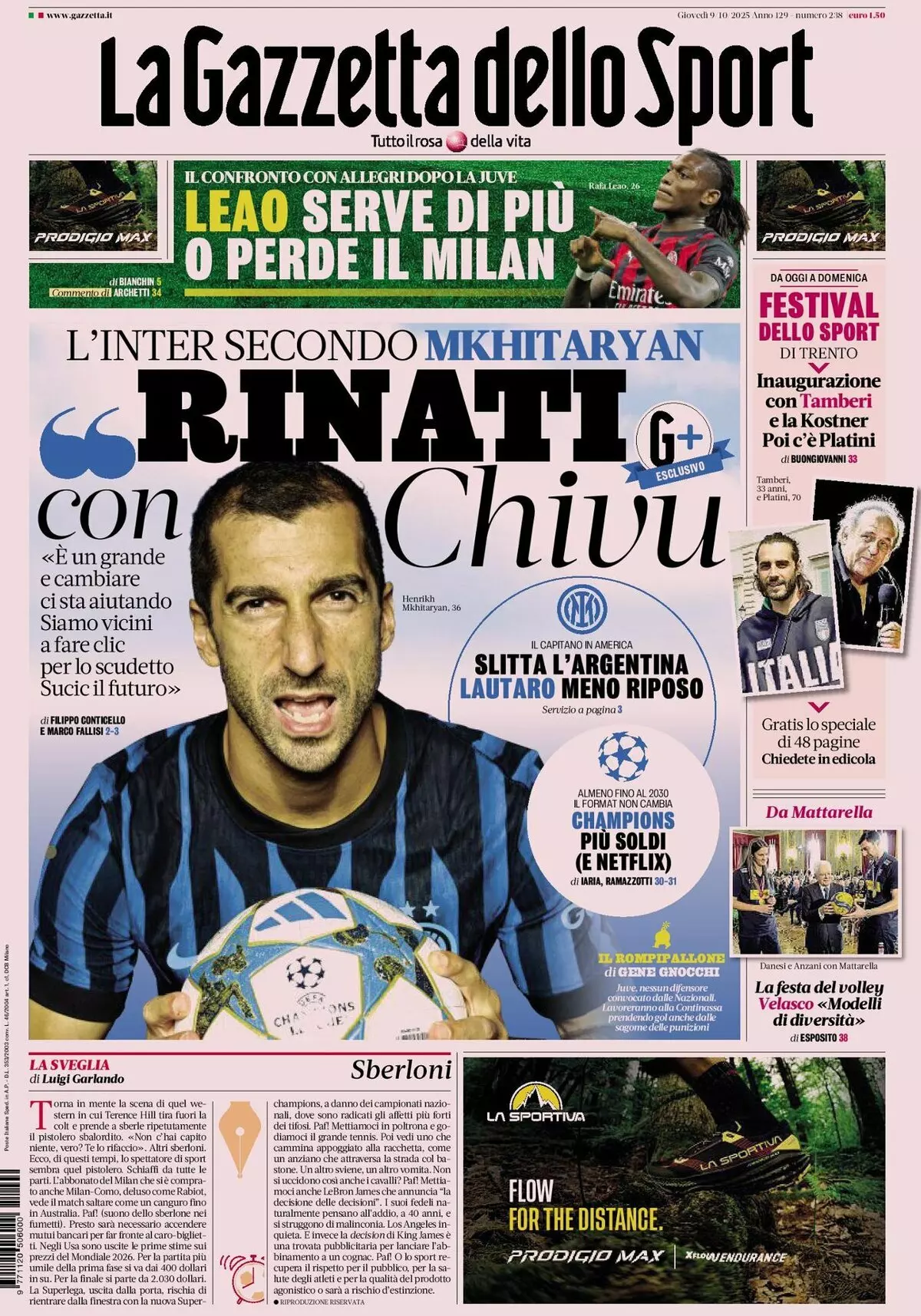 La redazione di calciocatanzaro propone ai lettori le prime pagine dei tre quotidiani sportivi in edicola oggi, giovedì 9 ottobre 2025