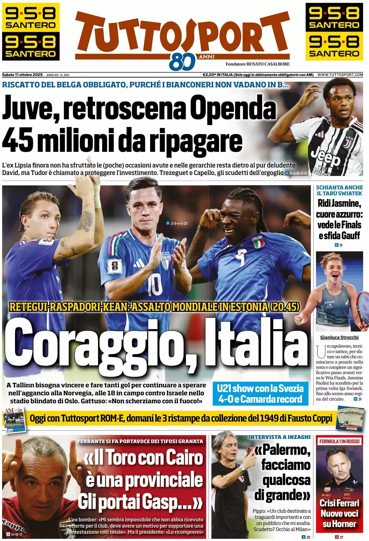 La redazione di calciocatanzaro propone ai lettori le prime pagine dei tre quotidiani sportivi in edicola oggi, sabato 11 ottobre 2025