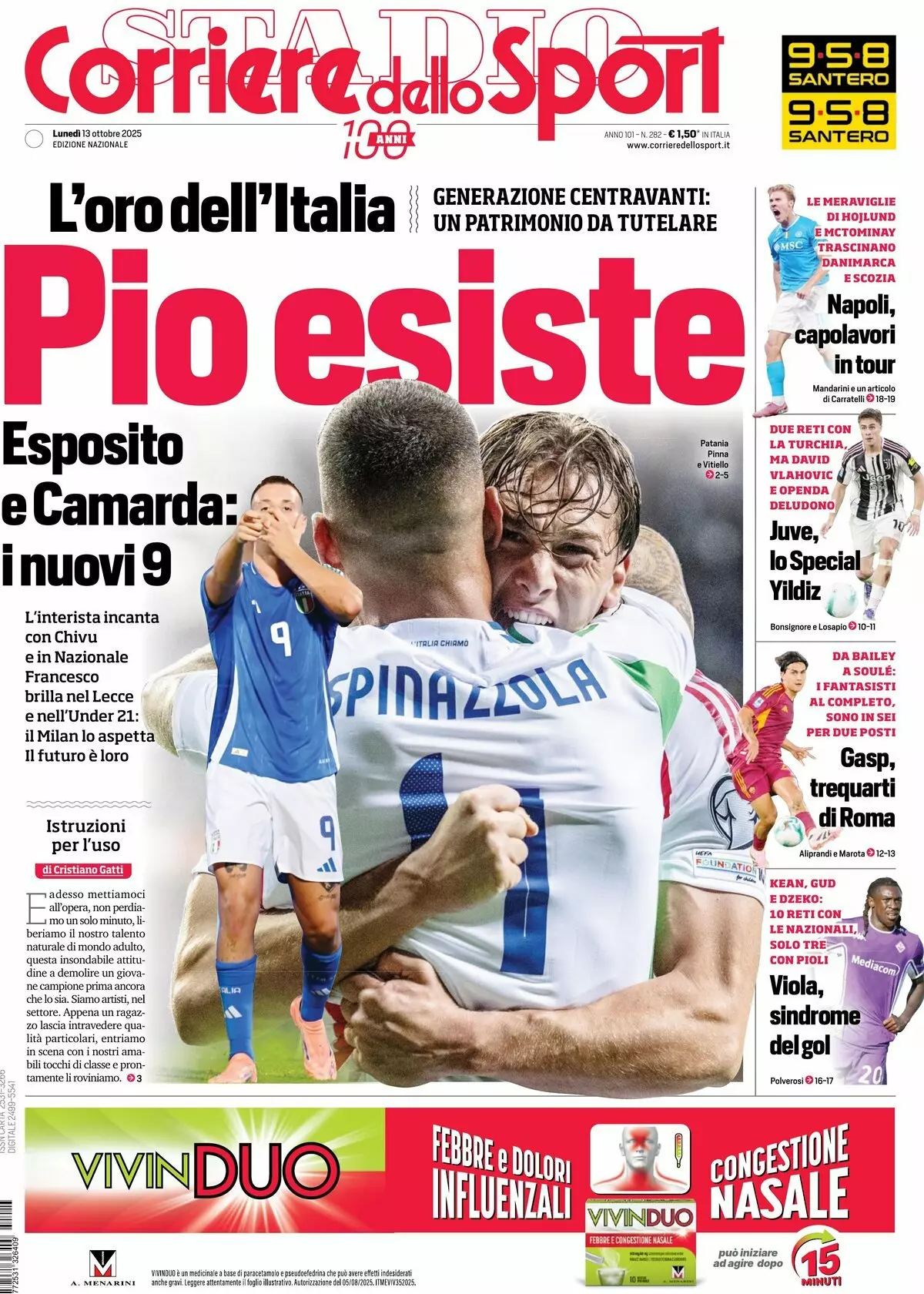 La redazione di calciocatanzaro propone ai lettori le prime pagine dei tre quotidiani sportivi in edicola oggi, lunedì 13 ottobre 2025