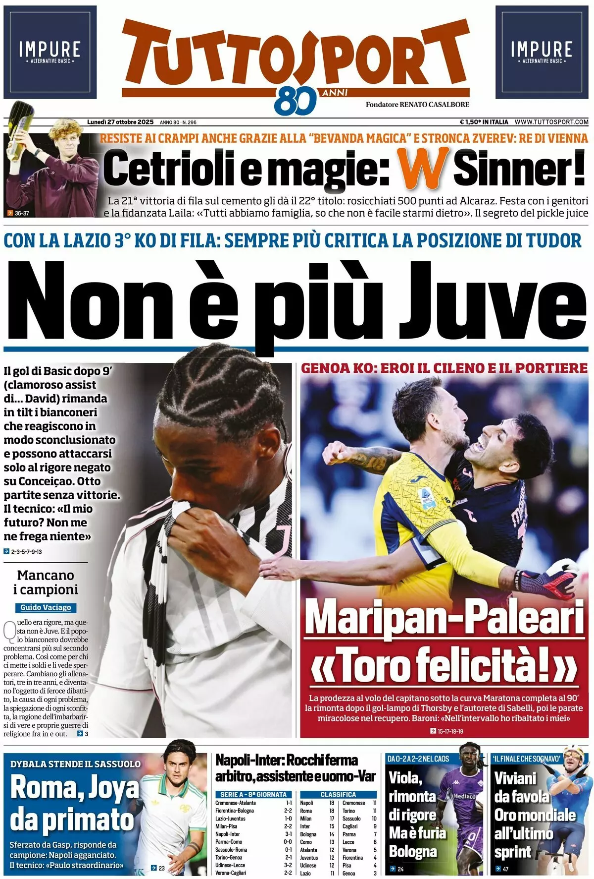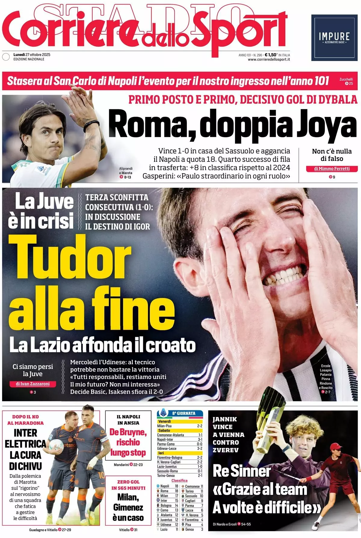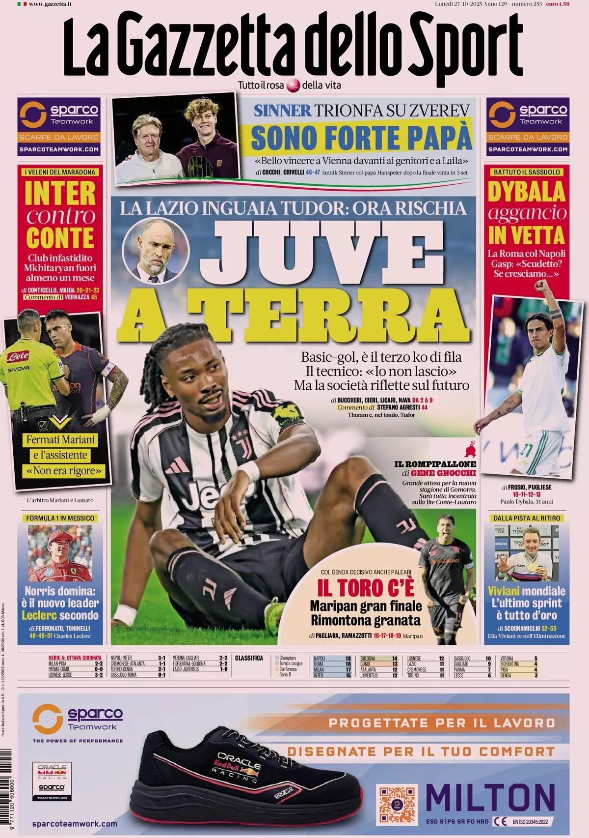 Le prime pagine dei quotidiani sportivi in edicola lunedì 27 ottobre