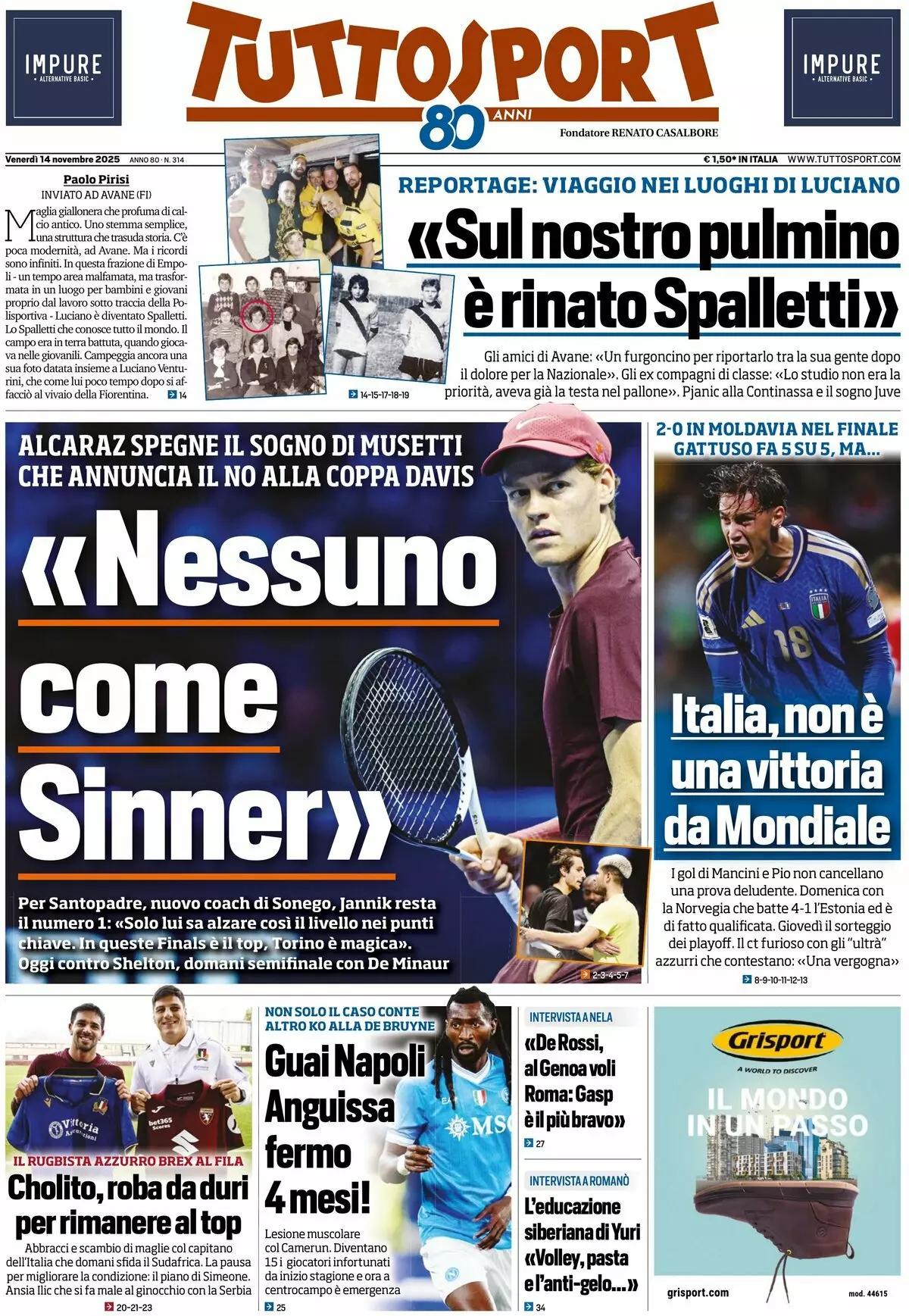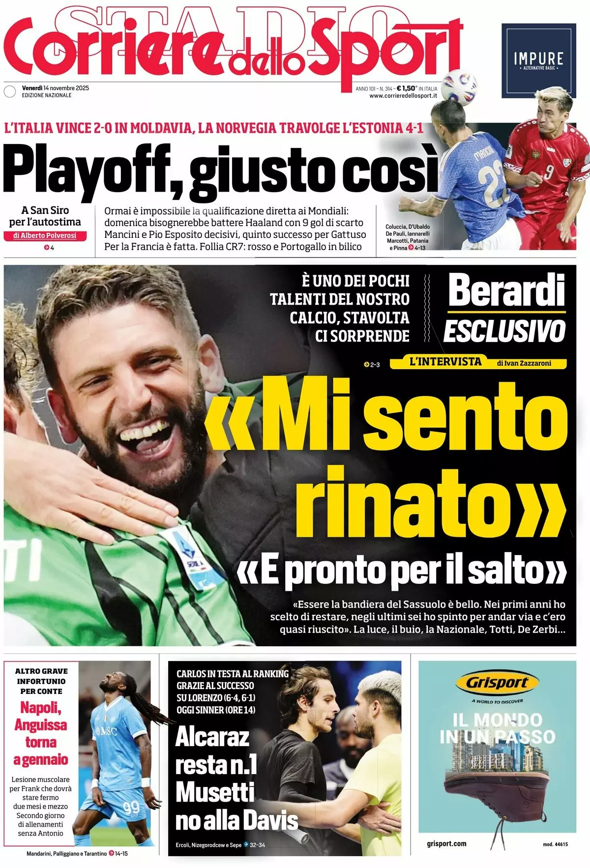 La redazione di calciocatanzaro propone ai lettori le prime pagine dei tre quotidiani sportivi in edicola oggi, venerdì 14 novembre 2025