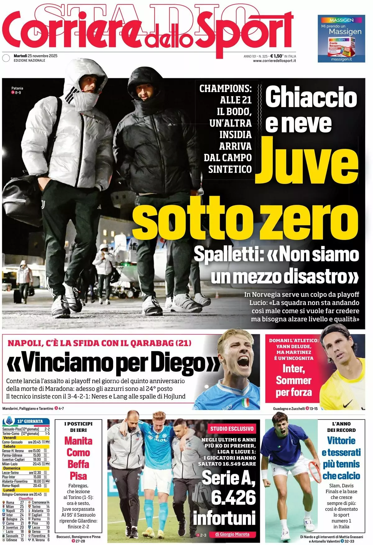 La redazione di calciocatanzaro propone ai lettori le prime pagine dei tre quotidiani sportivi in edicola oggi, martedì 25 novembre 2025