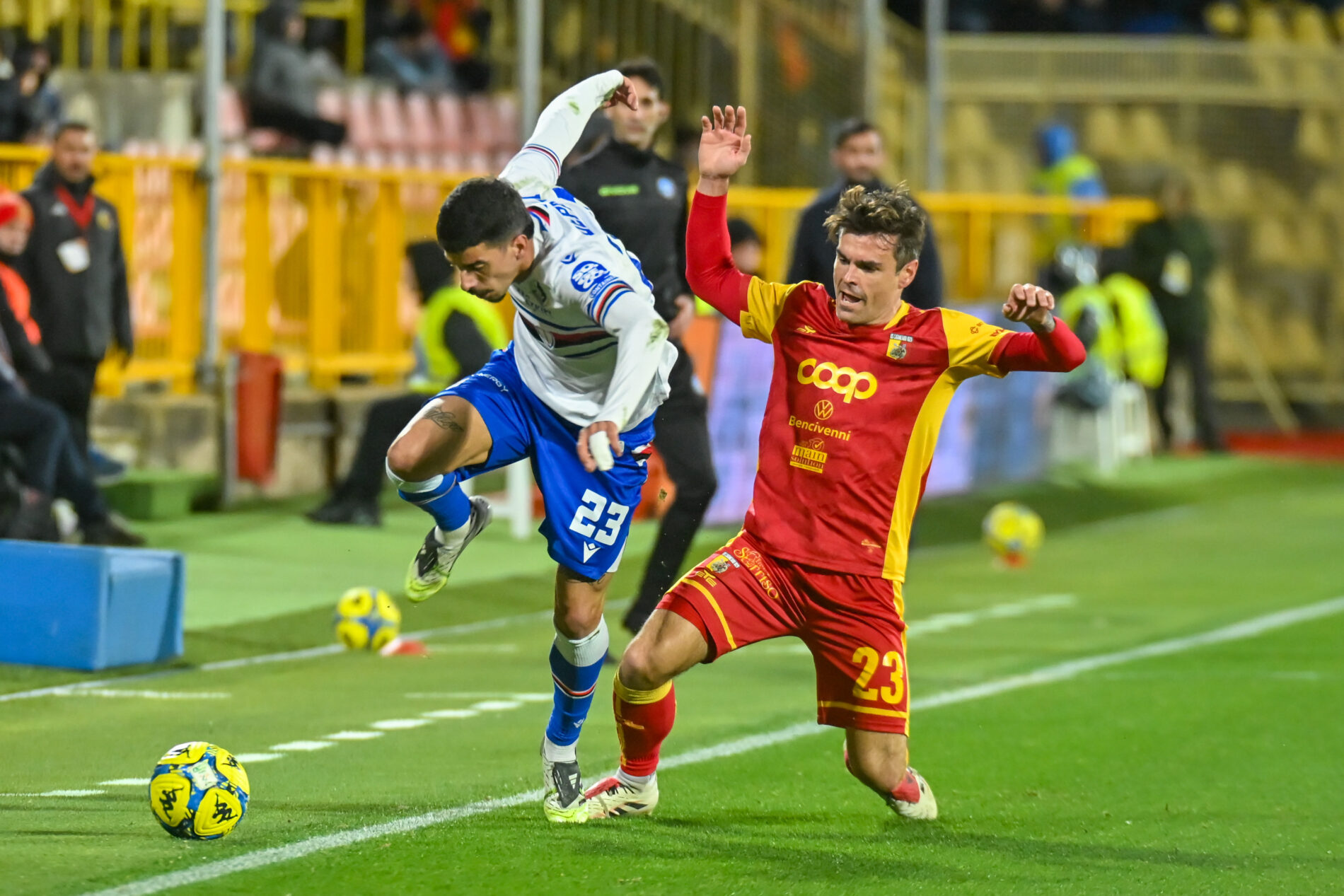 Serie B - US Catanzaro vs Uc Sampdoria Fabio Depaoli (Uc Sampdoria ) and Niccolo Brighenti (Us Catanzaro) during US Catanzaro vs Ic Sampdoria, Italian Soccer Serie B match in Catanzaro, Italy, January 25 2026 Catanzaro Italy